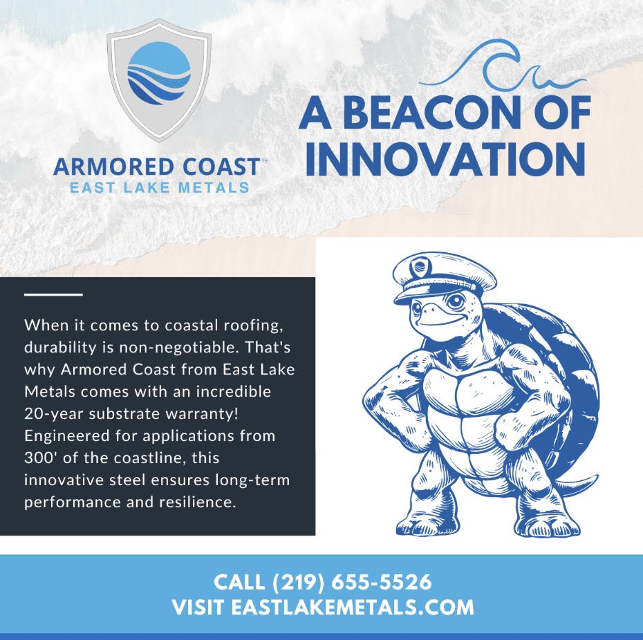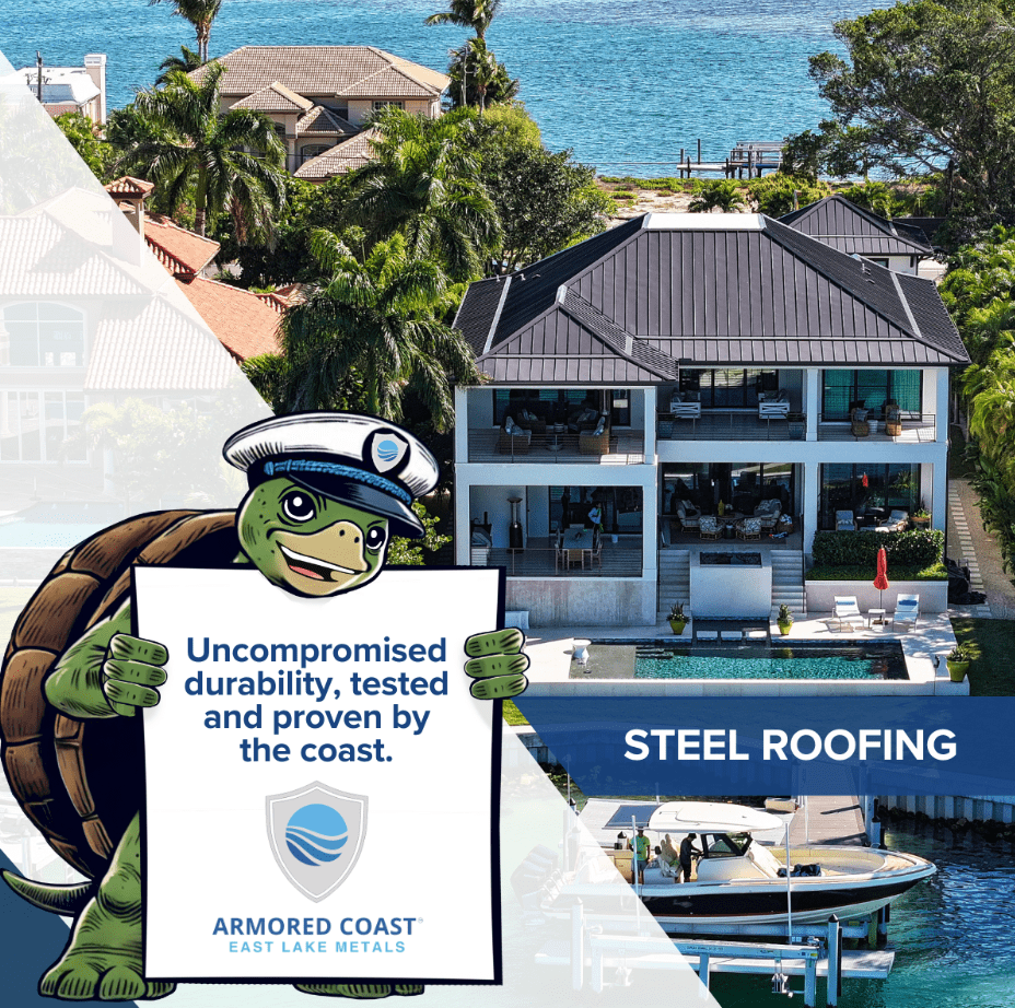 Armored Coast for coastal roofing is built to handle these variables at once. Its advanced coatings slow the effects of corrosion, shield the surface from environmental damage, and retain the roof’s finish. Protection starts 300 feet from the shoreline, allowing Armored Coast to maintain both structural integrity and long-term aesthetic value, giving builders and property owners confidence that their investment will remain durable and visually appealing for decades.